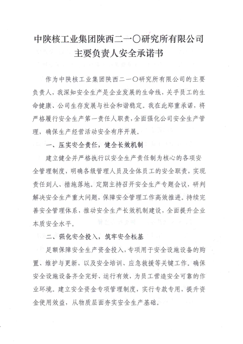 二一〇所主要負(fù)責(zé)人安全承諾書